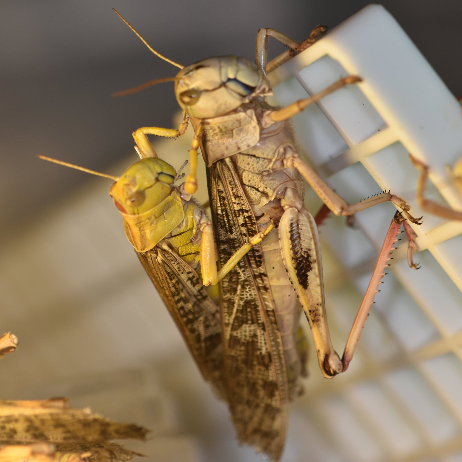 清潔な室内環境で丁寧に養殖された、健康なトノサマバッタ成虫です。爬虫類・両生類・大型魚・猛禽類などの生体給餌用として最適。高タンパク・低脂質で、動物たちの食いつきも抜群です。カメレオンなどの昼行性爬虫類には、昼行性の草食昆虫が最適!