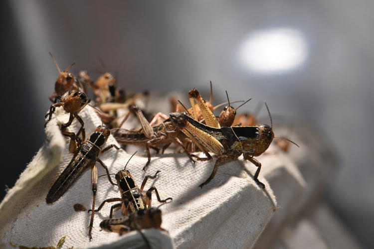 清潔な室内環境で丁寧に養殖された、健康なトノサマバッタ中齢個体です。