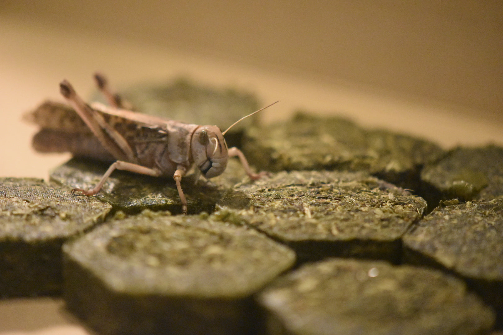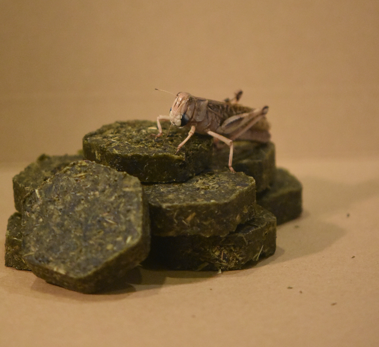 トノサマバッタを養殖していて、たくさんの糞が発生します。この糞はとても乾燥していて不快な匂いが全くなく、草のようないい香りです。